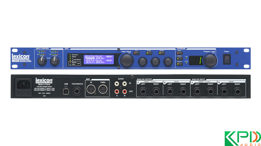 Lexicon MX400 xử lý âm thanh S/PDIF 24-bit tín hiệu đầu vào xử lý âm thanh nhanh chóng, âm thanh với hiệu ứng hấp dẫn nhờ vào EQ tham số, trang bị cổng USB thuận tiện cho người dùng.